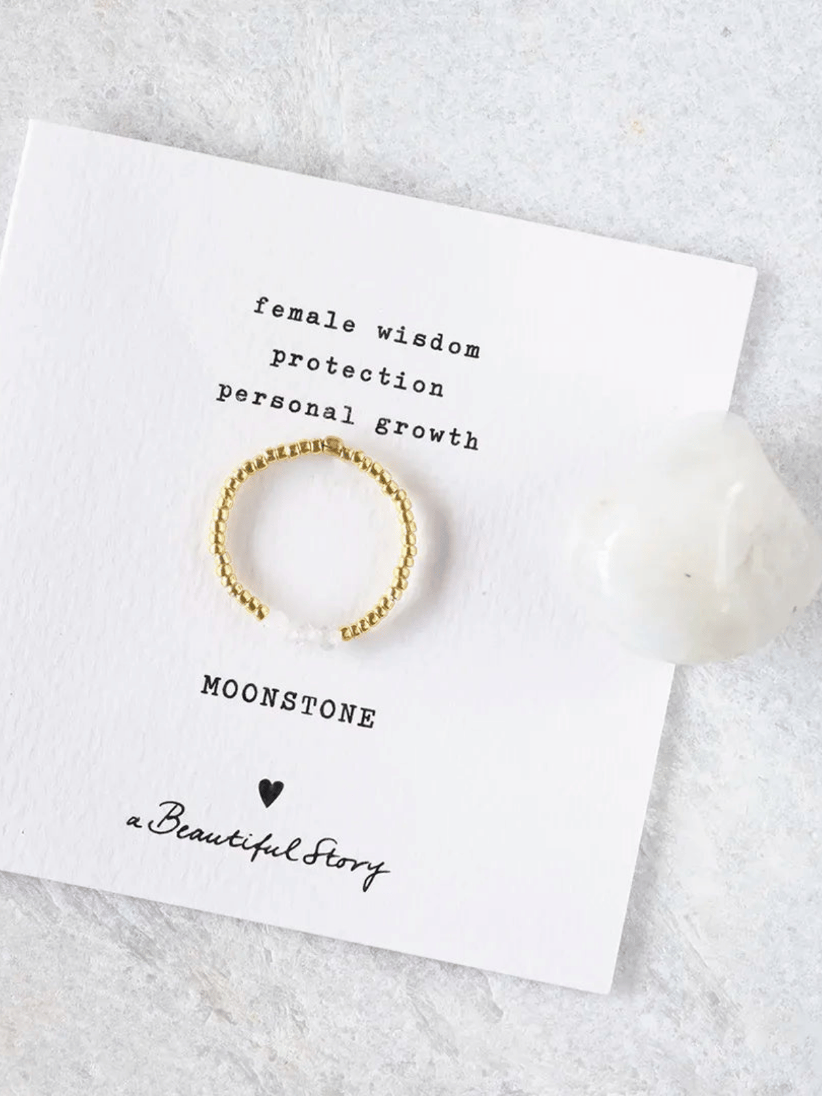 Dieser handgefertigte goldene Clarity-Mondstein-Ring von A Beautiful Story fördert Intuition, Balance und innere Ruhe. Jeder Ring ist ein Unikat und voller Bedeutung – somit ist er auch ein wunderbares Geschenk für dich selbst oder einen besonderen Menschen.