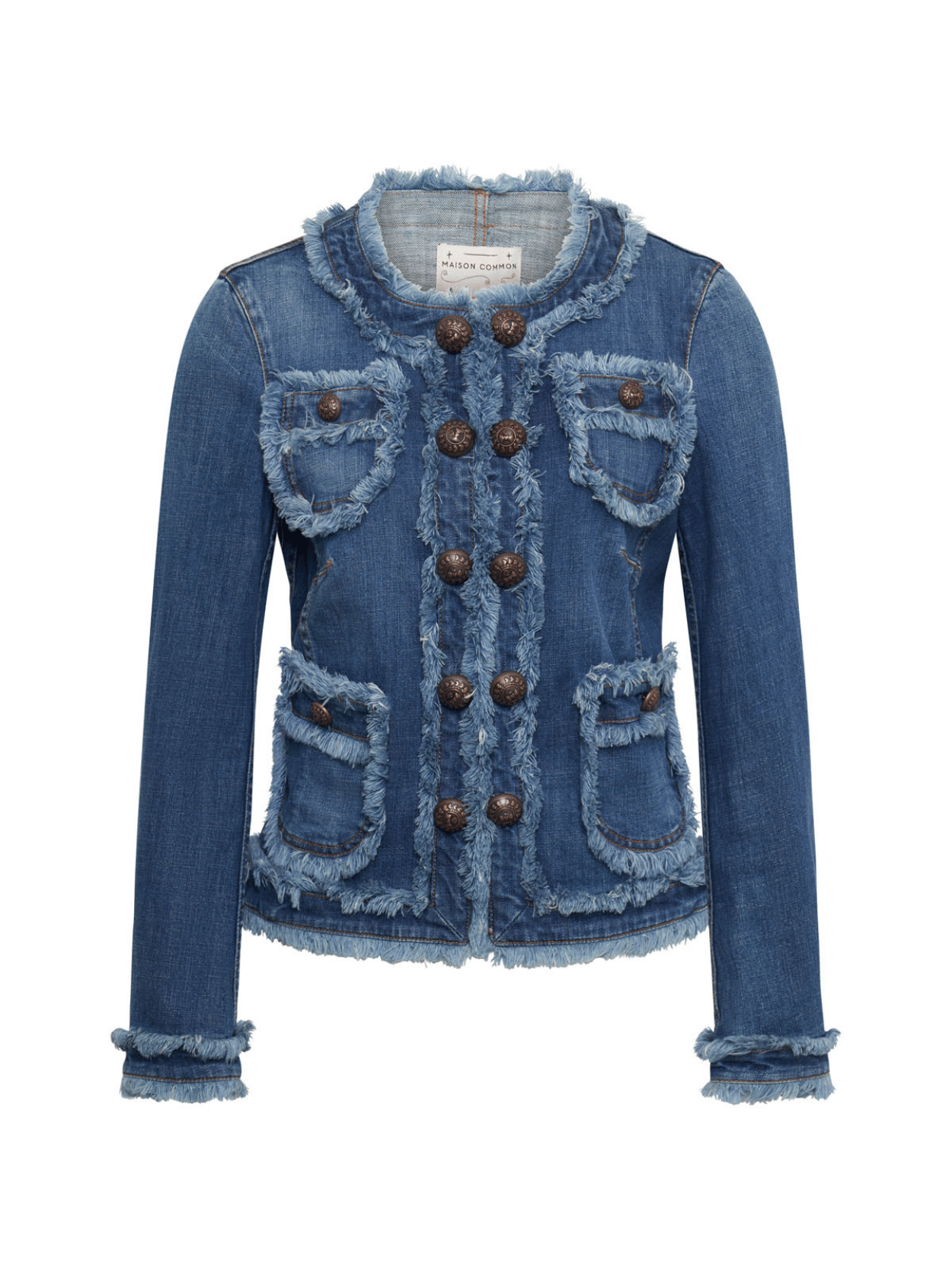 Diese Jeansjacke mit stylischen Fransen von Maison Common verleiht jedem Outfit sofort einen modernen, hochwertigen Look. Die aufwendig gearbeiteten Details und die markante Struktur setzen ein modisches Statement und machen die Jacke zum vielseitigen Lieblingsstück. Perfekt für alle, die Individualität und exklusives Design schätzen.