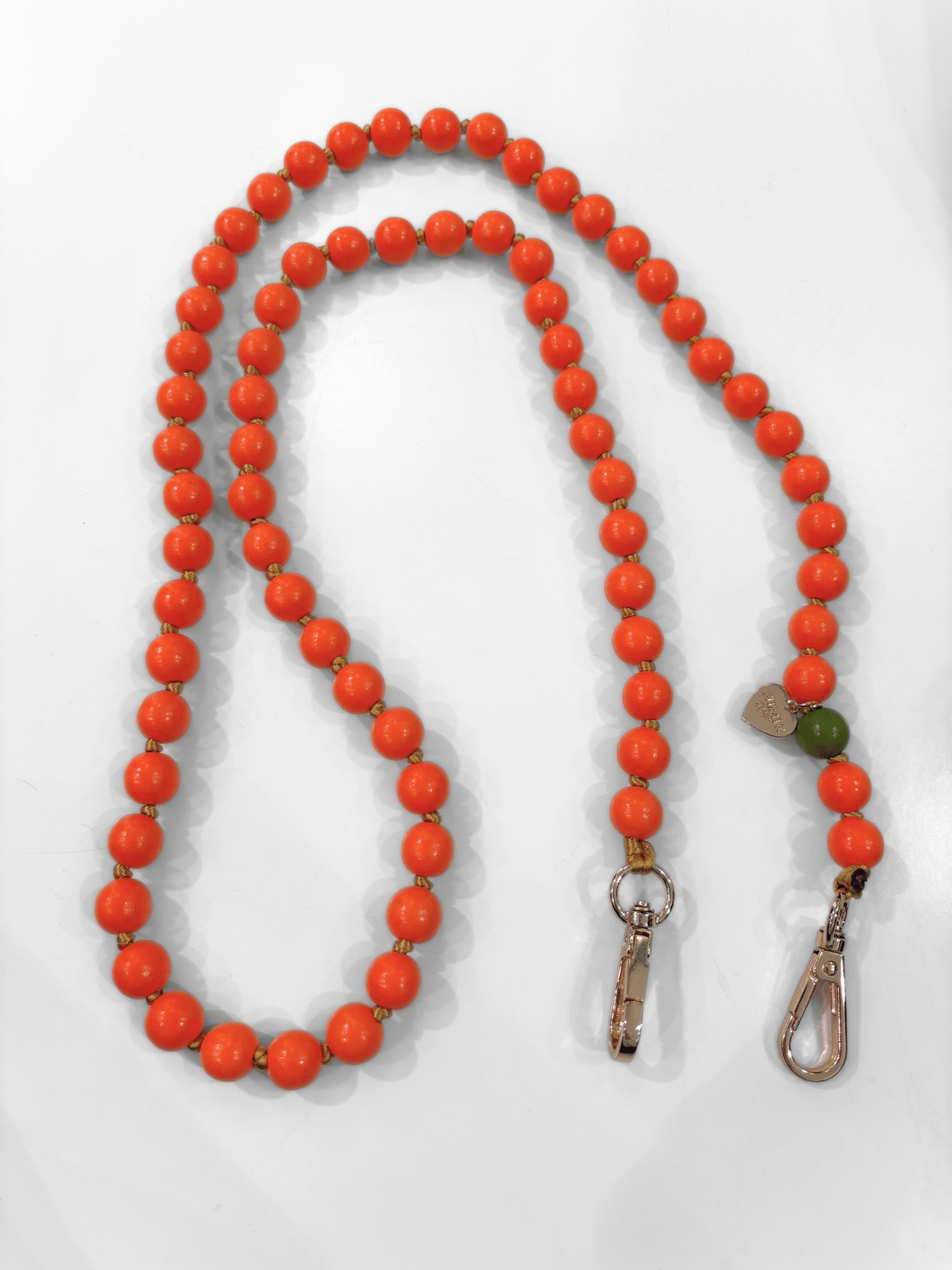 Material: Holzerperlen lackiert, Goldkarabiner ( Metall )