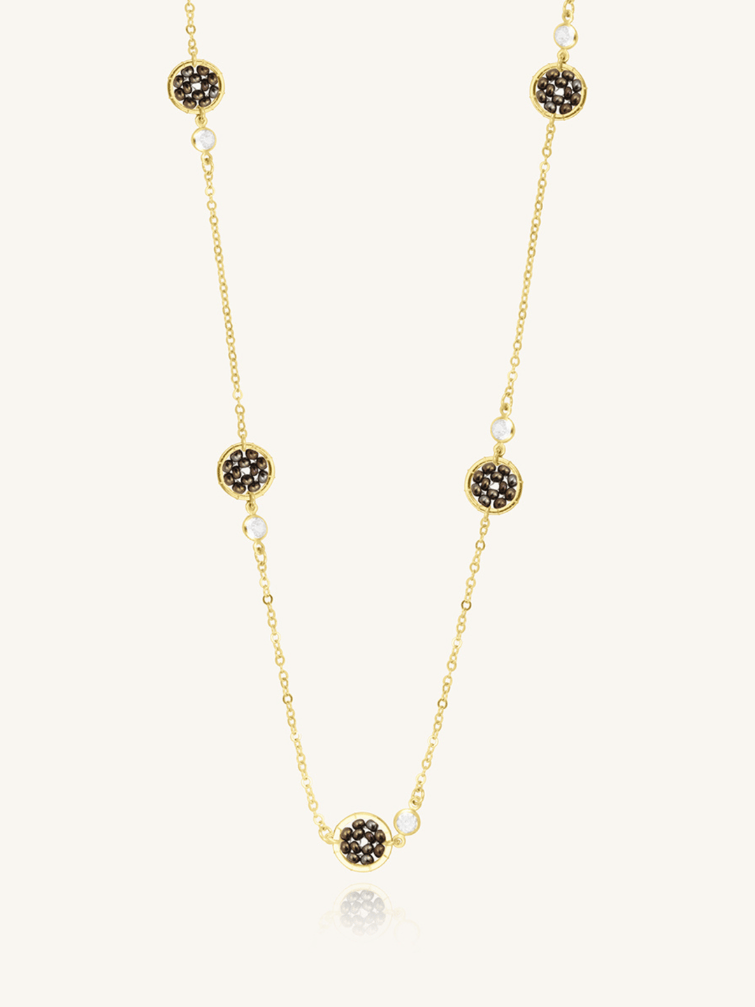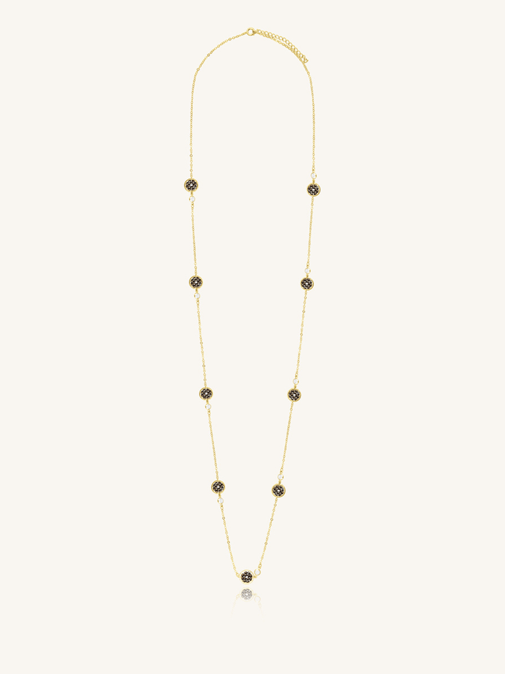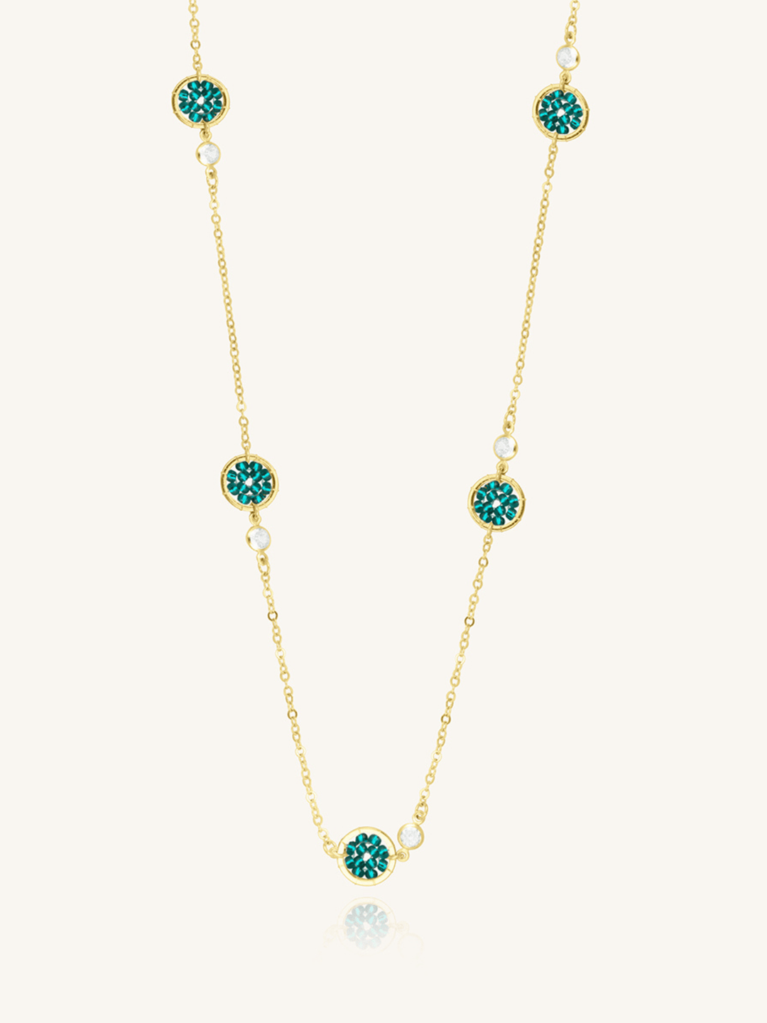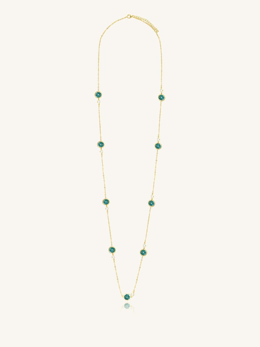 Von Gold- und Silberketten bis hin zu farbenfrohen Designs aus Vintage-Glas, Edelsteinen oder hochwertigem Acetat - die Materialvielfalt lässt keine Wünsche offen. Besonders edel wirken Ketten mit natürlichen Elementen wie Perlen, Turmalin oder Rosenquarz, die dem Outfit Eleganz und Bedeutung verleihen. Farblich reicht das Spektrum von klassischem Gold und Silber über zarte Pastelltöne bis hin zu kräftigen Nuancen wie Türkis und Koralle. Ob dezent oder extravagant.