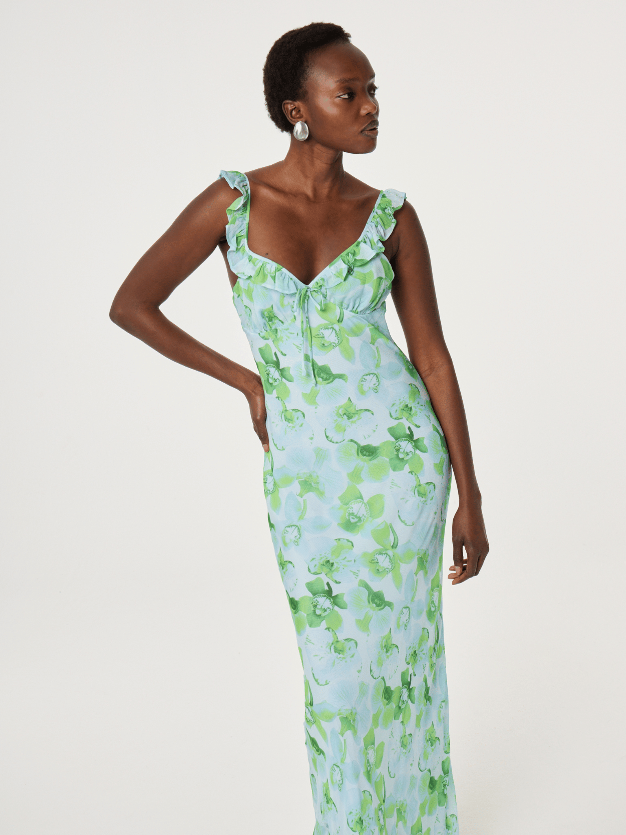 Das Josine Maxikleid von Fabienne Chapot überzeugt mit fließender Silhouette und frischem Allover-Print für einen femininen Look. Zarte Träger mit Rüschen und der schmeichelnde V-Ausschnitt verleihen dem Kleid eine romantische Note und sorgen für luftigen Tragekomfort. Perfekt für Sommer-Events, Urlaub oder elegante Alltagslooks mit stilvoller Leichtigkeit.