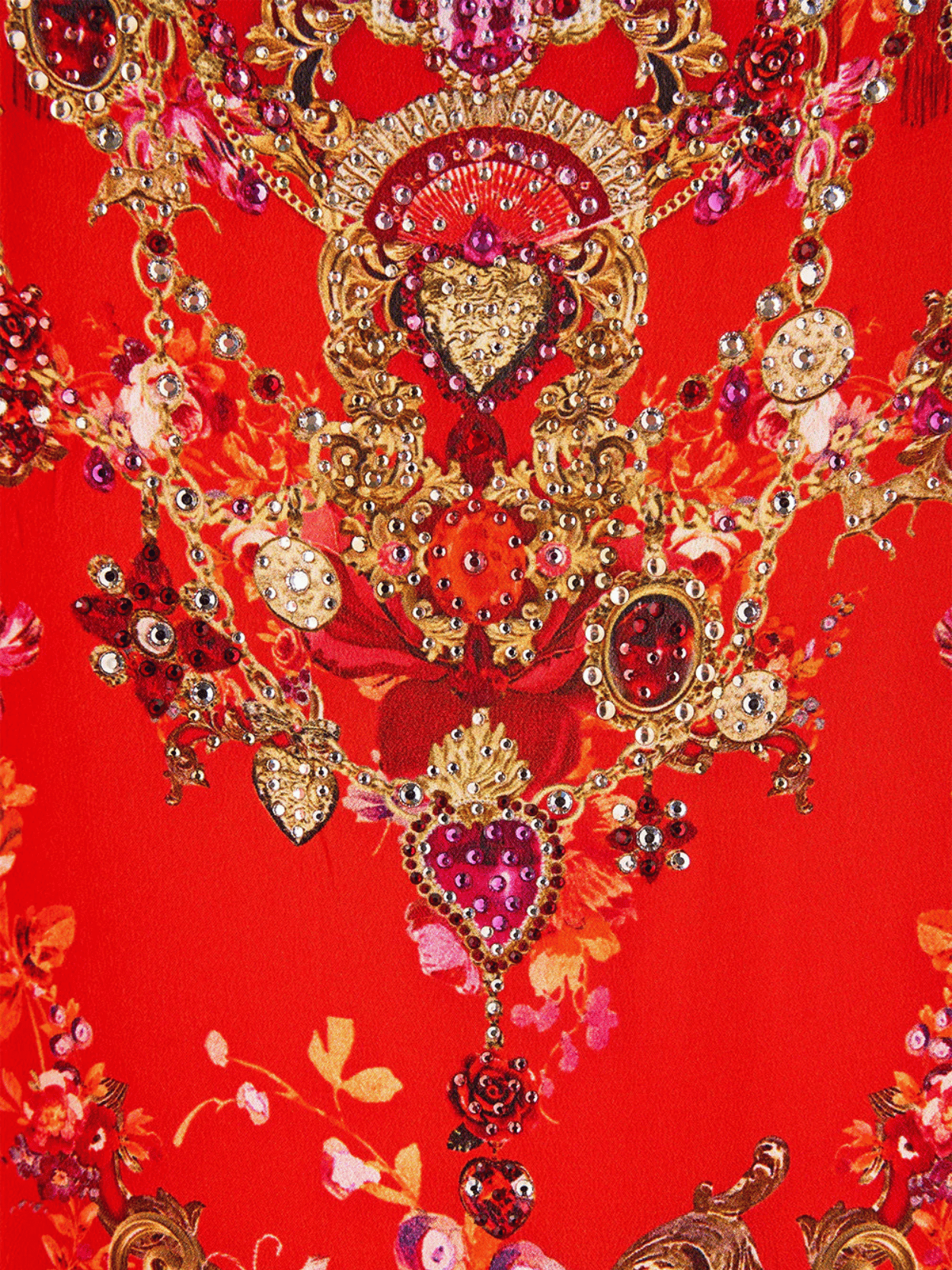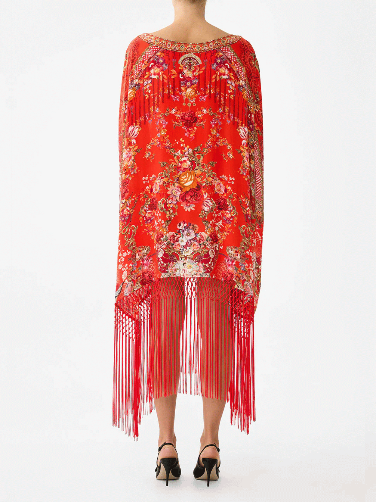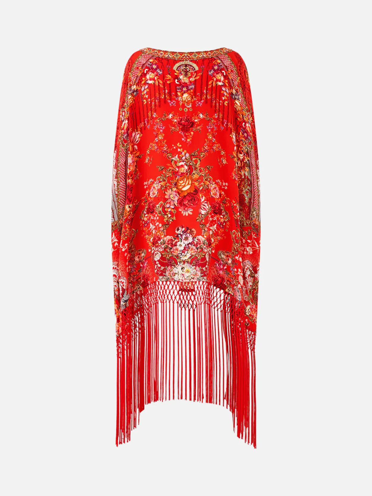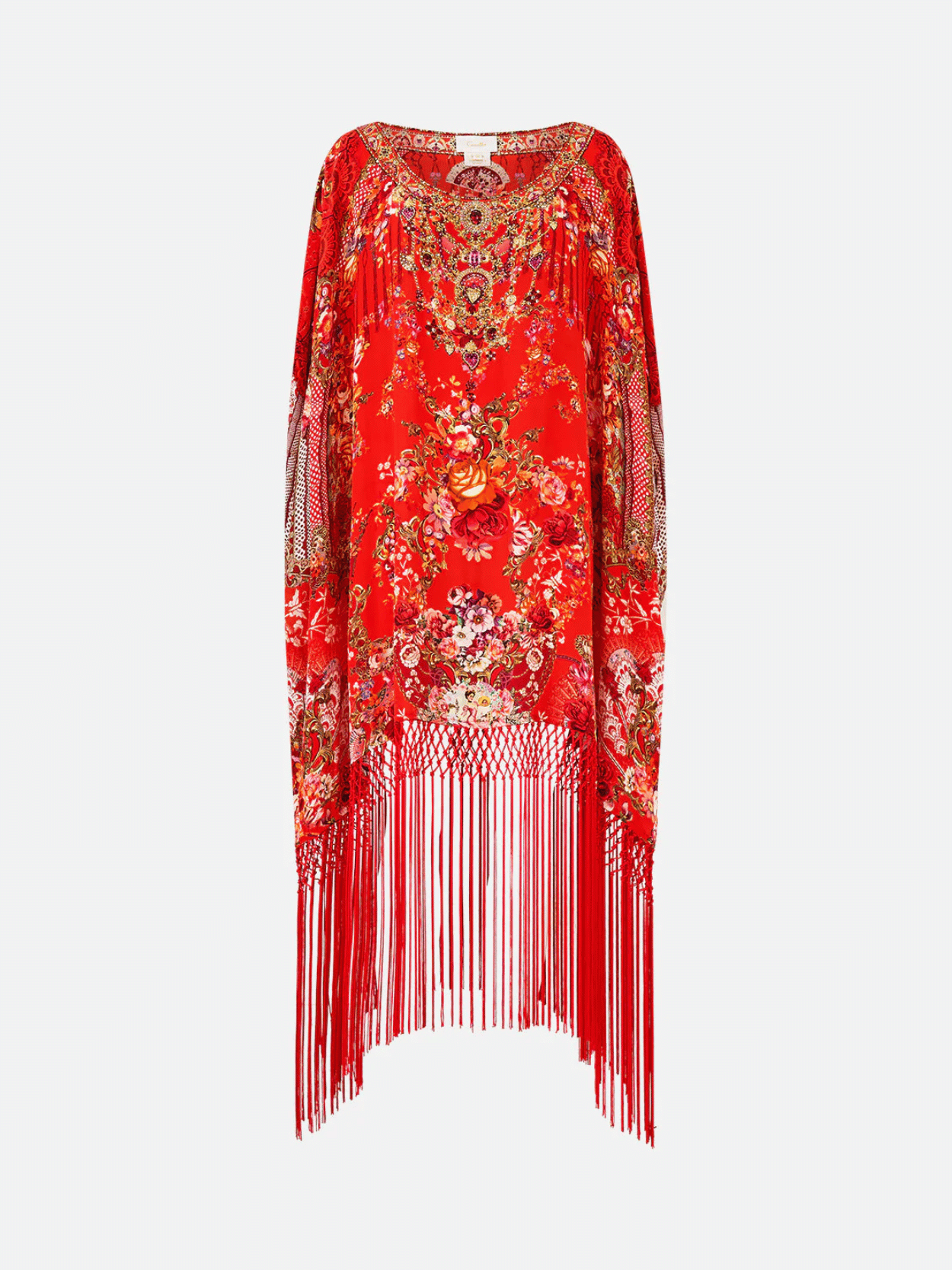 Der CAMILLA Olé Olé Short Round Neck Kaftan mit Fransen begeistert mit opulentem Print in leuchtendem Rot und fließender Seide. Die entspannte Silhouette mit Rundhalsausschnitt und kurzen Ärmeln wird durch lange Fransen und funkelnde Kristalle veredelt. Ein luxuriöser Statement-Kaftan mit maximaler Ausstrahlung.