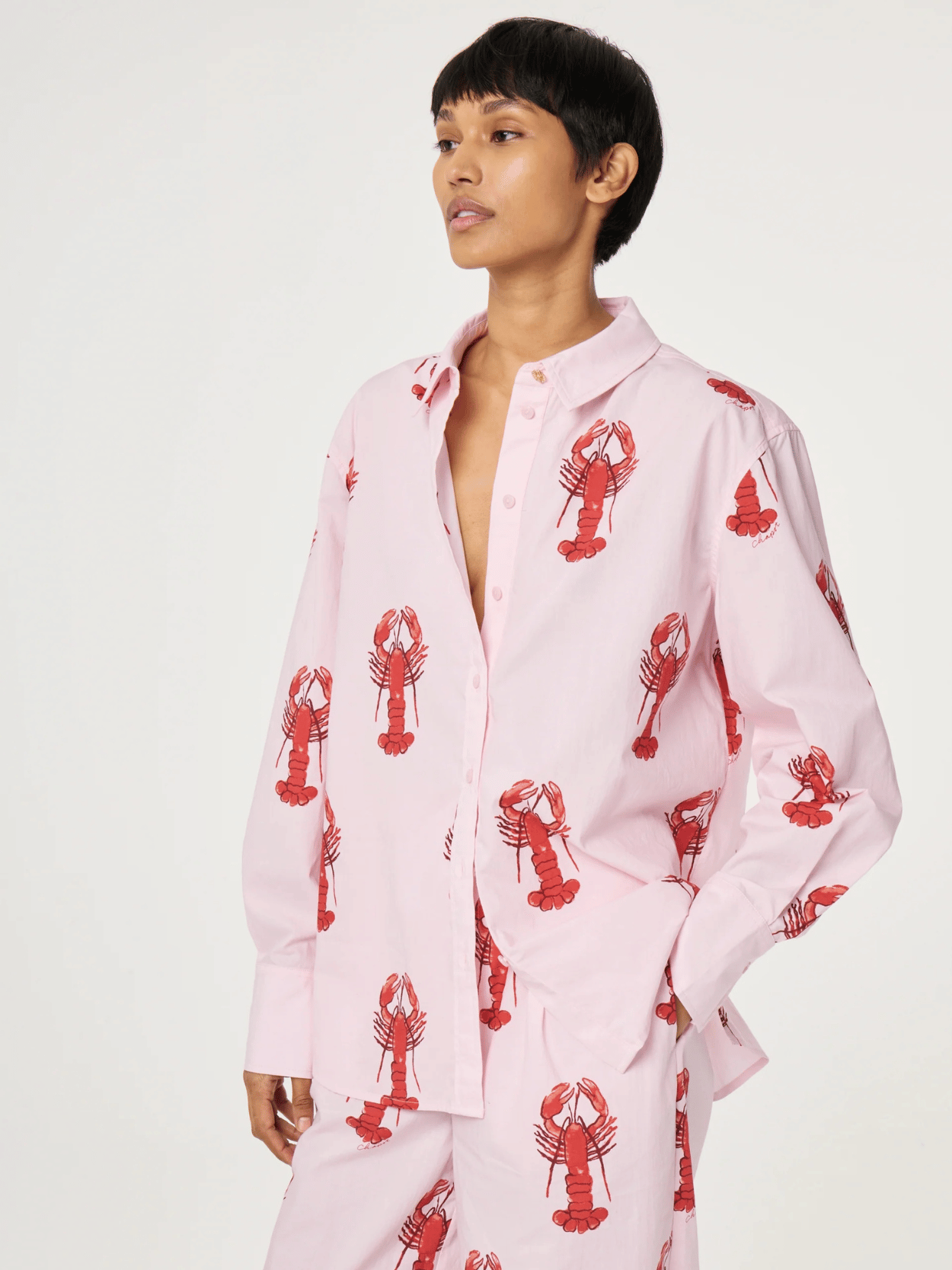 Die Tony Bluse von Fabienne Chapot bringt mit ihrem verspielten Hummer-Print in leuchtendem Tangerine auf zartem Pink frische, sommerliche Energie in deinen Look. Gefertigt aus 100 % Baumwolle und im bequemen Regular Fit geschnitten, fühlt sich die Langarmbluse angenehm weich und atmungsaktiv auf der Haut an. Perfekt für Casual-Outfits, Brunch-Dates oder stylische Alltagslooks mit Statement-Print.