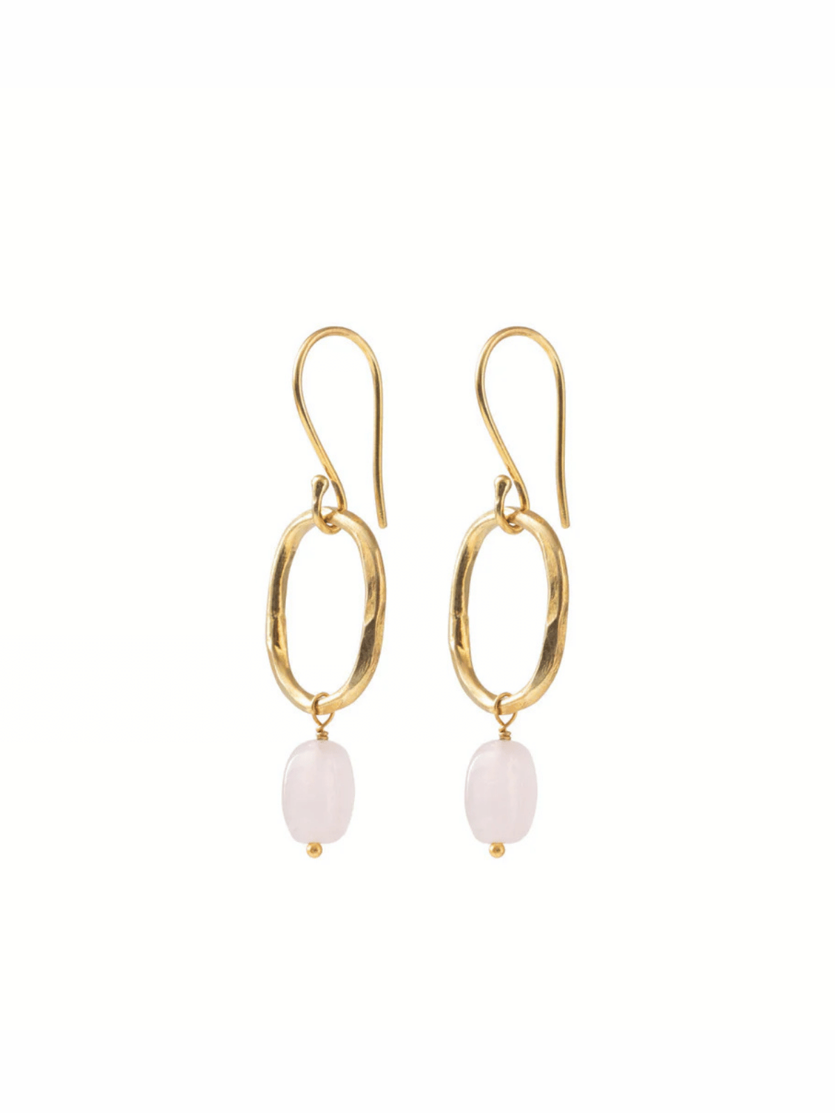 Diese vergoldeten Ohrringe von A Beautiful Story bestehen aus Messing und sind mit einem sanft schimmernden Rosenquarz veredelt. Der zarte Edelstein steht für Liebe, Harmonie und Vertrauen und bringt feminine Leichtigkeit in deinen Look. Mit ihrem ovalen Ring-Design sind sie das perfekte Accessoire für Alltag und besondere Momente – fair handgefertigt und voller Bedeutung.