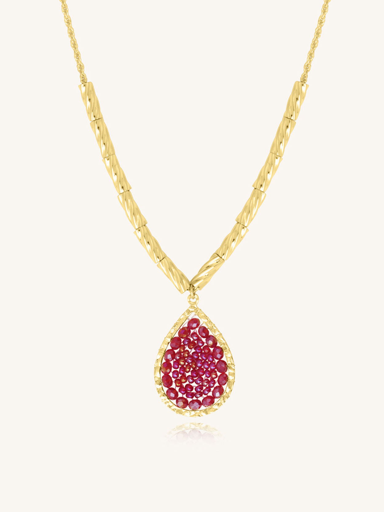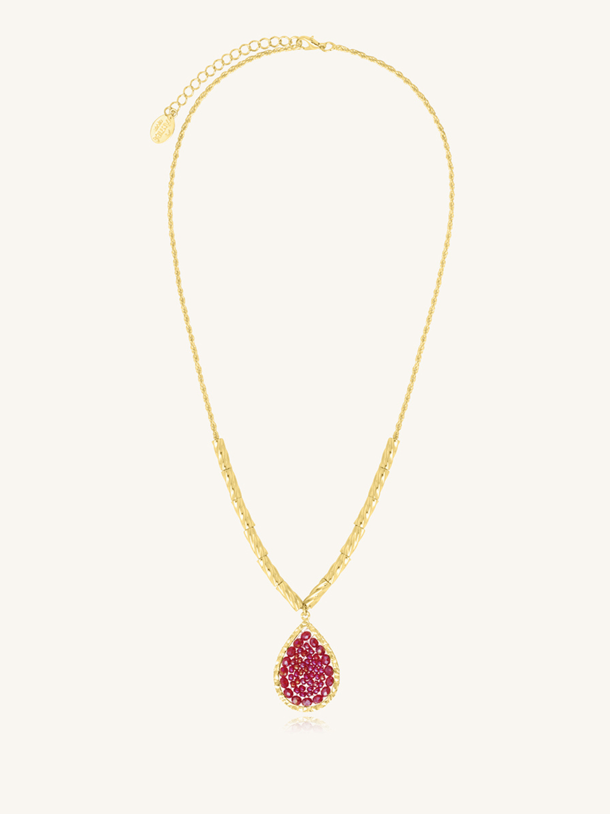 Die Ysé-Halskette von Santibe Paris vereint zarte Eleganz mit strahlender Brillanz. Die feine, vergoldete Kette trägt einen tropfenförmigen Anhänger, der dank schwebender rechteckiger Perlen und funkelnder Kristalle wie eine schimmernde Wasserperle wirkt. In sorgfältiger Handarbeit gefertigt, verleiht dieses Collier jedem Look einen edlen, modernen Akzent.