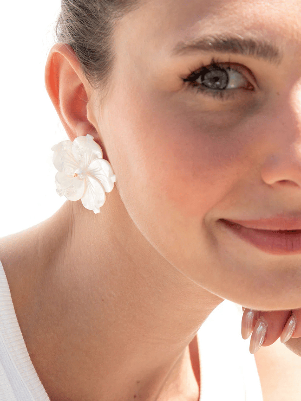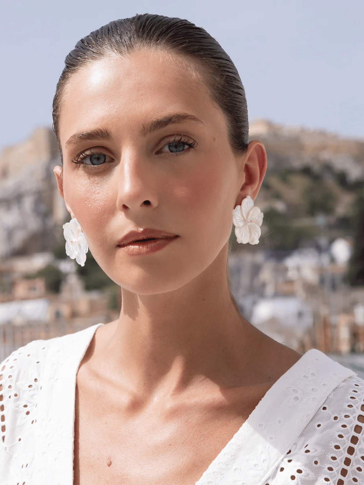 Die Antheia Ohrringe von Katerina Psoma aus weiß geschnitzter Perlmutt verleihen deinem Look eine romantische, feminine Note mit zeitloser Eleganz im Stil der 1950er Jahre. Als limitierte Edition sind sie vielseitig kombinierbar und passen perfekt zu jedem Anlass – von Alltag bis Event. Handgefertigt aus ausgewählten Materialien, ist jedes Paar einzigartig und ein stilvolles Statement für jede Saison.