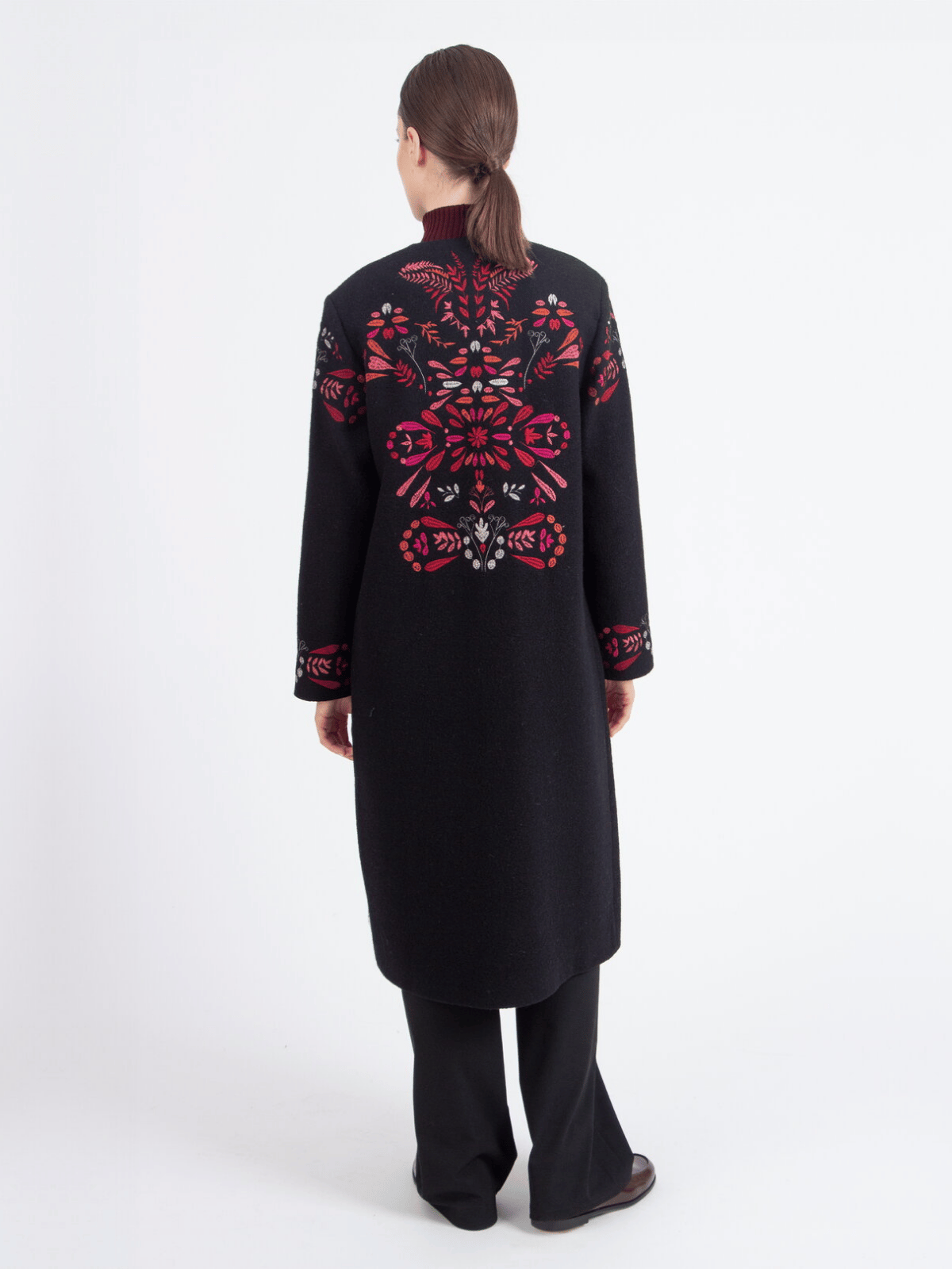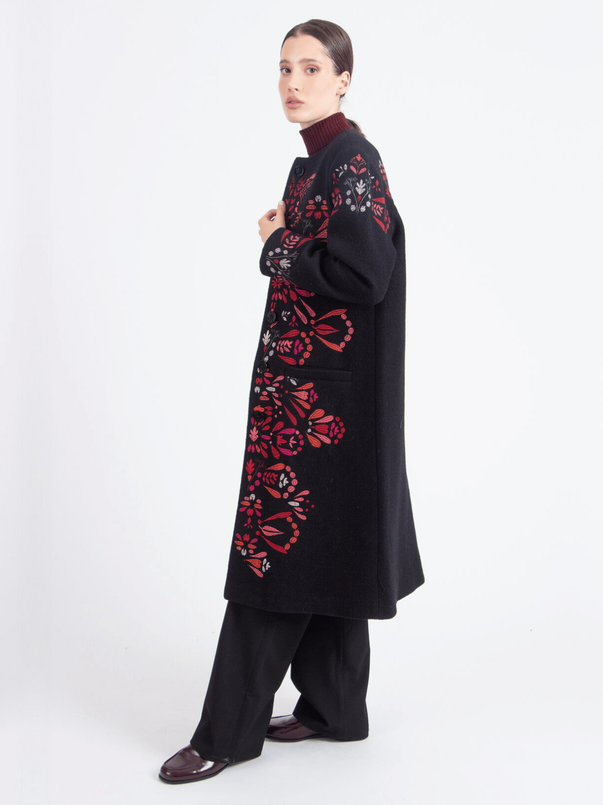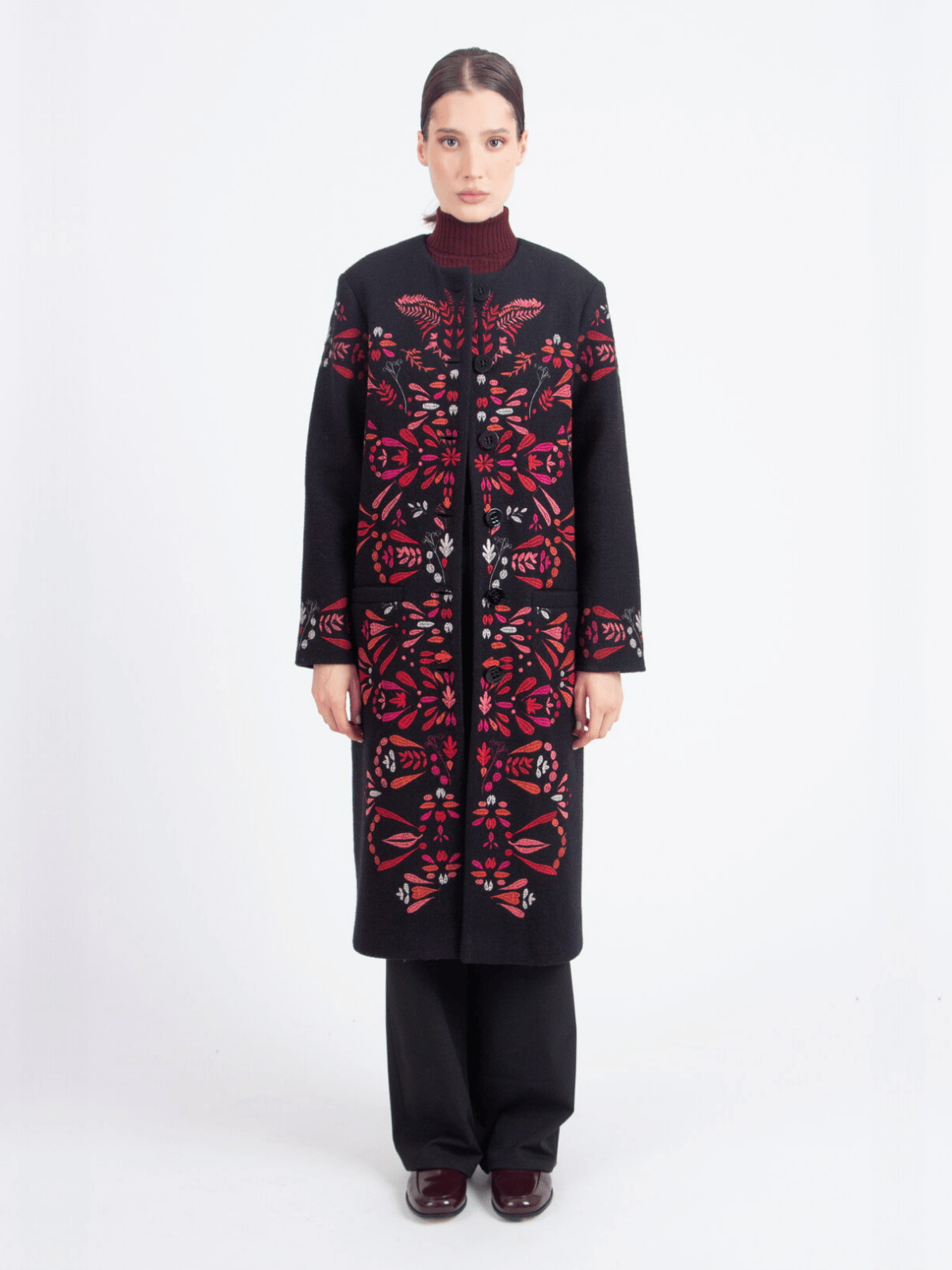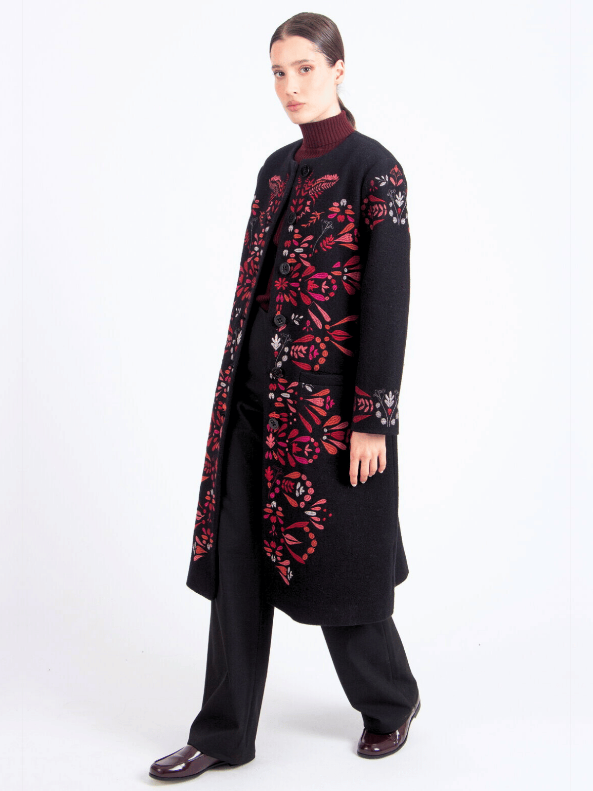 Der Mantel mit Stickerei von Ivko vereint klassische Eleganz mit kunstvoller Handwerkskunst. Das detailreiche Plantopia-Stickmotiv auf hochwertiger, gekochter Wolle fängt die Schönheit der Natur ein und verleiht dem Design einen modernen, raffinierten Look. Ein stilvolles Statement-Piece für die kalte Jahreszeit – edel, warm und einzigartig.
