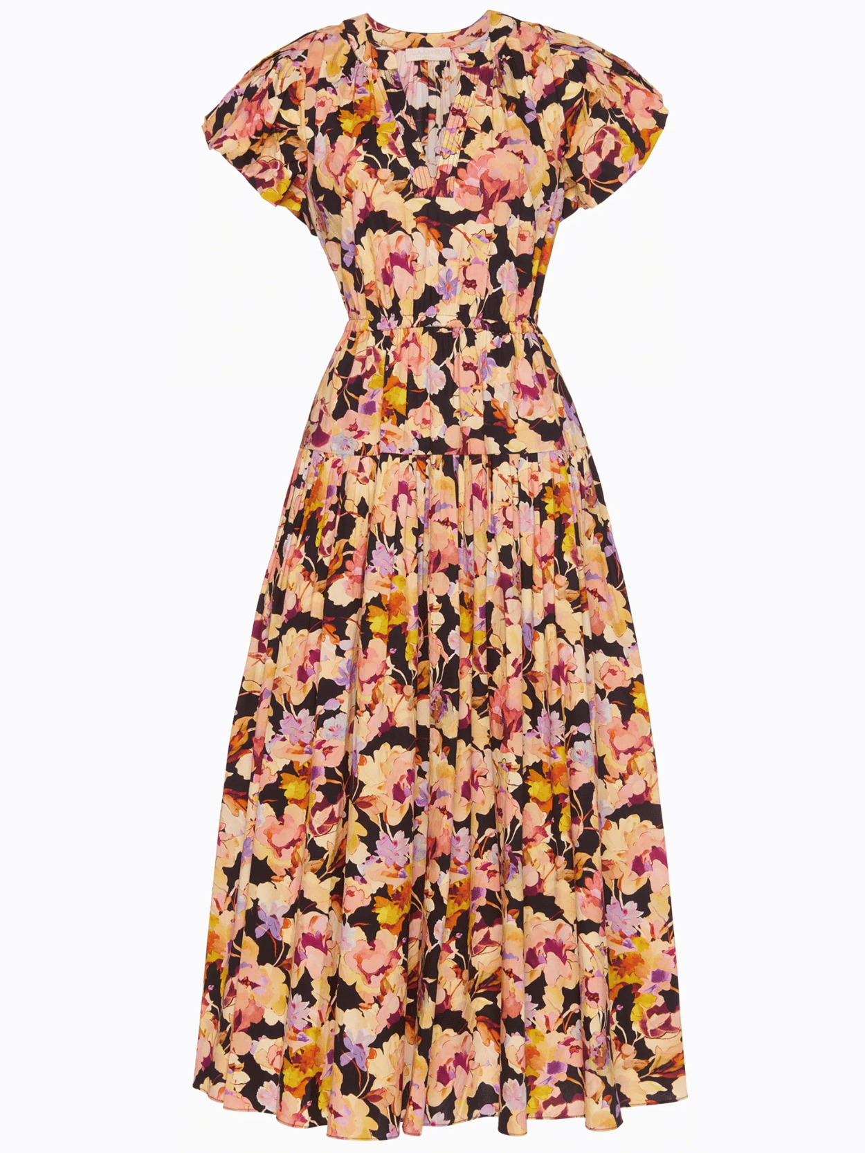 Das Marin Midikleid von Ulla Johnson begeistert mit einer femininen Silhouette aus hochwertigem Popelin und einem kunstvollen, mehrfarbigen Blütenprint in zarter Aquarell-Optik. Verspielte Puffärmel und ein fließend plissierter Saum sorgen für elegantes Volumen und eine moderne Leichtigkeit. Perfekt für stilvolle Auftritte – dieses Kleid vereint Komfort, Raffinesse und zeitlose Eleganz.