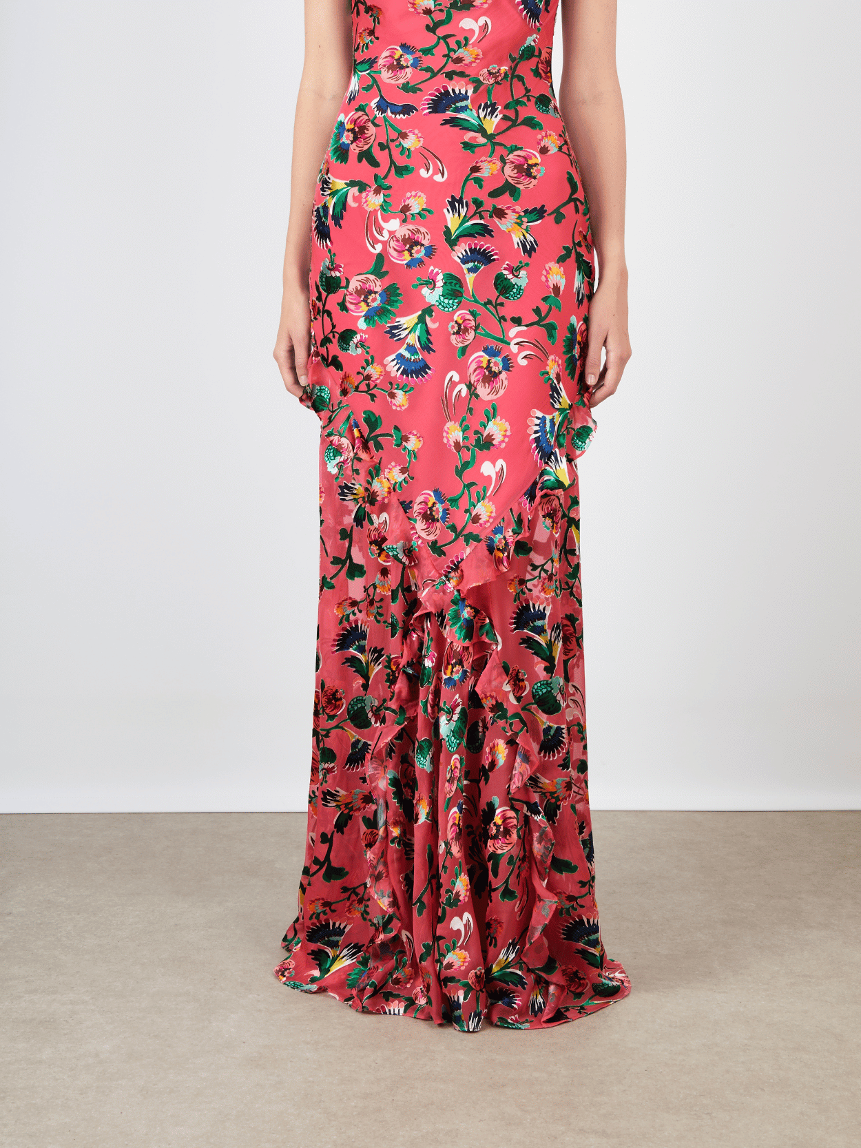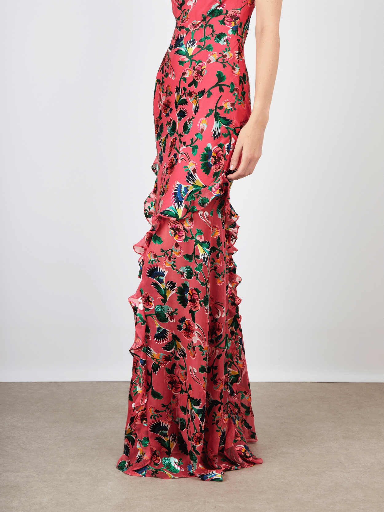 The elegant Seema maxi dress by SALONI captivates with its flowing silhouette, asymmetrical neckline, and artful floral print. Playful ruffles and delicate straps give the dress a feminine, modern touch with a luxurious flair. Perfect for weddings, evening events, or special summer moments – a stylish statement piece with timeless elegance.