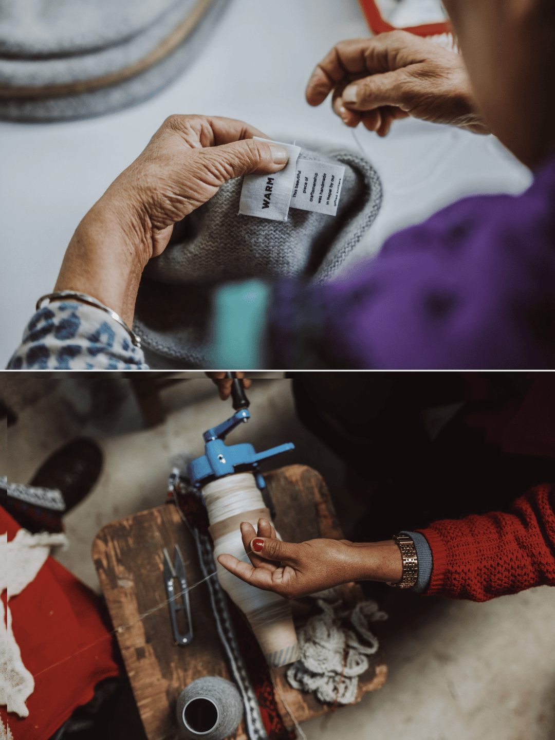 Warm Me's cashmere products are made from the finest, carefully selected yarn, originating in Mongolia. Processing takes place in Nepal in close cooperation with experienced artisans, with many pieces created with loving handicraft. Warm Me places great emphasis on fair working conditions, the preservation of traditional techniques, and responsible, sustainable production.