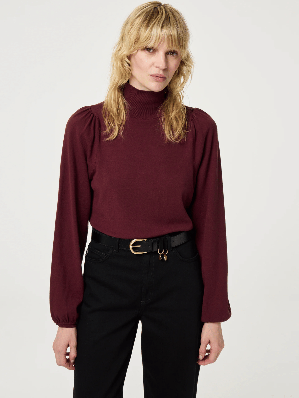Der Molly-Pullover von Fabienne Chapot in Bordeaux ist ein Must-have für die kommende Saison. Das leichte Strickmaterial fällt weich und sorgt gleichzeitig für eine elegante Silhouette. Dank seines entspannten Schnitts und des Stehkragens lässt sich der Pullover ideal zu Jeans, Hosen oder Röcken kombinieren – perfekt für einen lässig-eleganten Alltagslook.