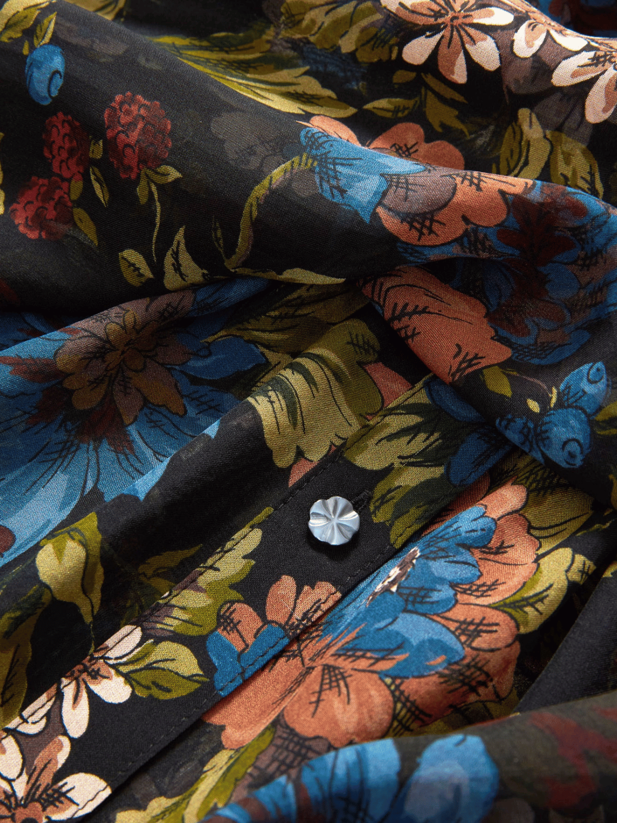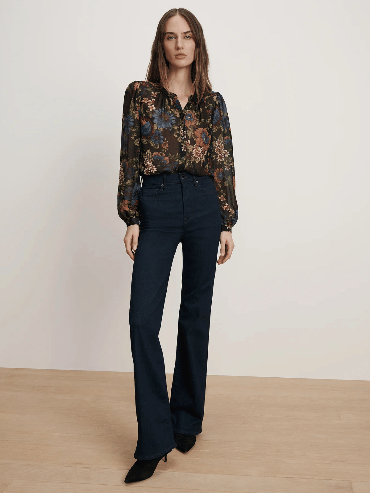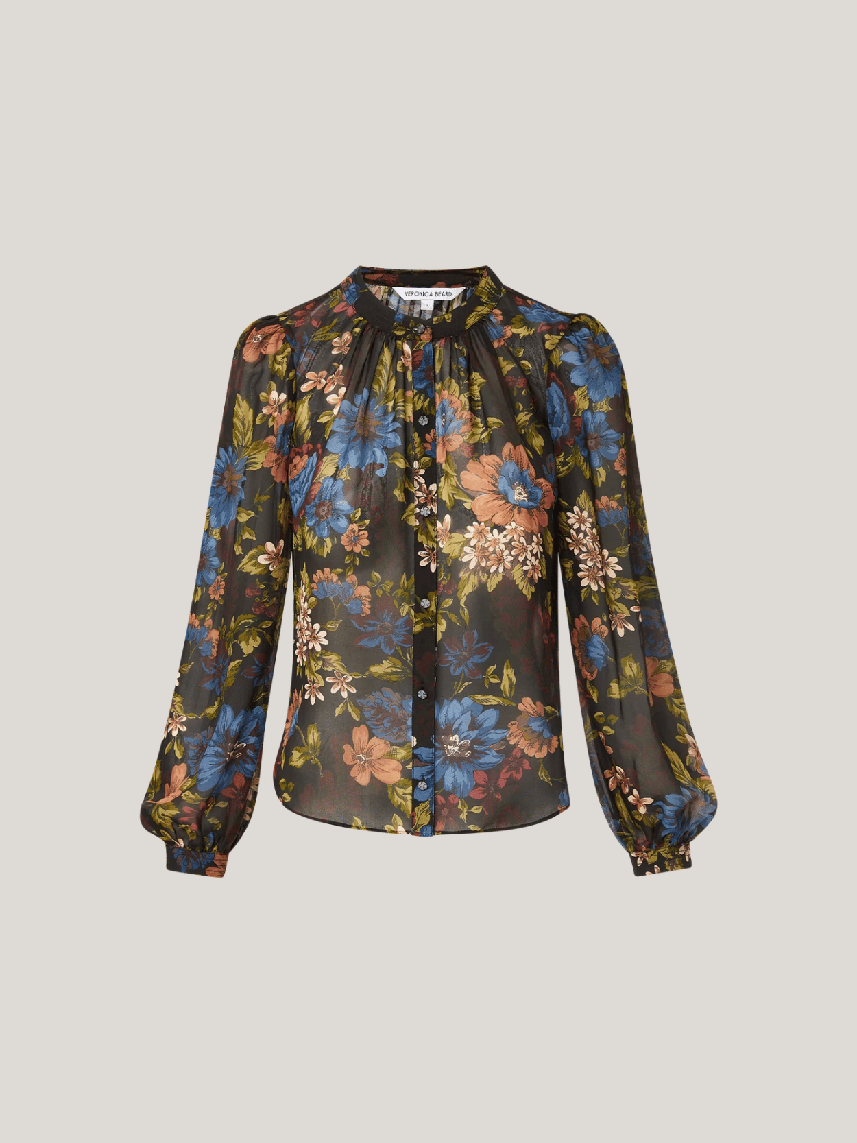 Die Ashlynn Seidenbluse von Veronica Beard ist ein vielseitiger Klassiker für jeden Tag und jede Jahreszeit. Aus luxuriöser Seide mit dezent transparenter Optik gefertigt, überzeugt sie mit warmem Blumenmuster, femininen Rüschen am Ausschnitt, luftigen Blousonärmeln und edlen Perlmuttknöpfen. Perfekt kombinierbar zu Jeans, Hosen oder Midiröcken – ein Must-have für elegante Alltagslooks.