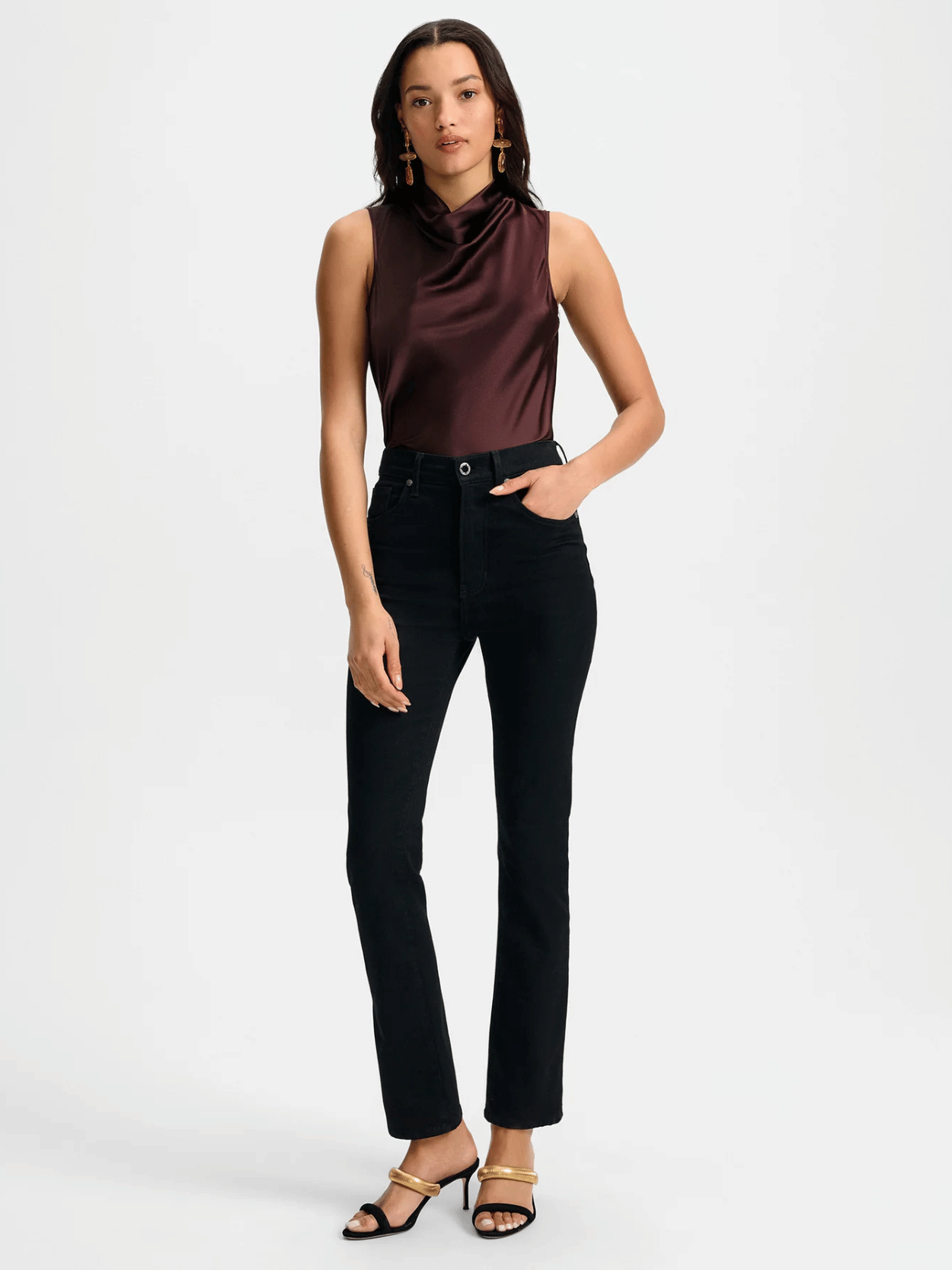 Veronica Beard's Tam silk top captivates with luxurious stretch silk in a sophisticated chestnut brown and an elegant waterfall neckline. With its flowing drape and refined keyhole detail at the back, it's a versatile highlight – perfect with jeans for everyday wear or with the long Medina silk skirt for a glamorous look. A must-have for stylish looks with timeless elegance.