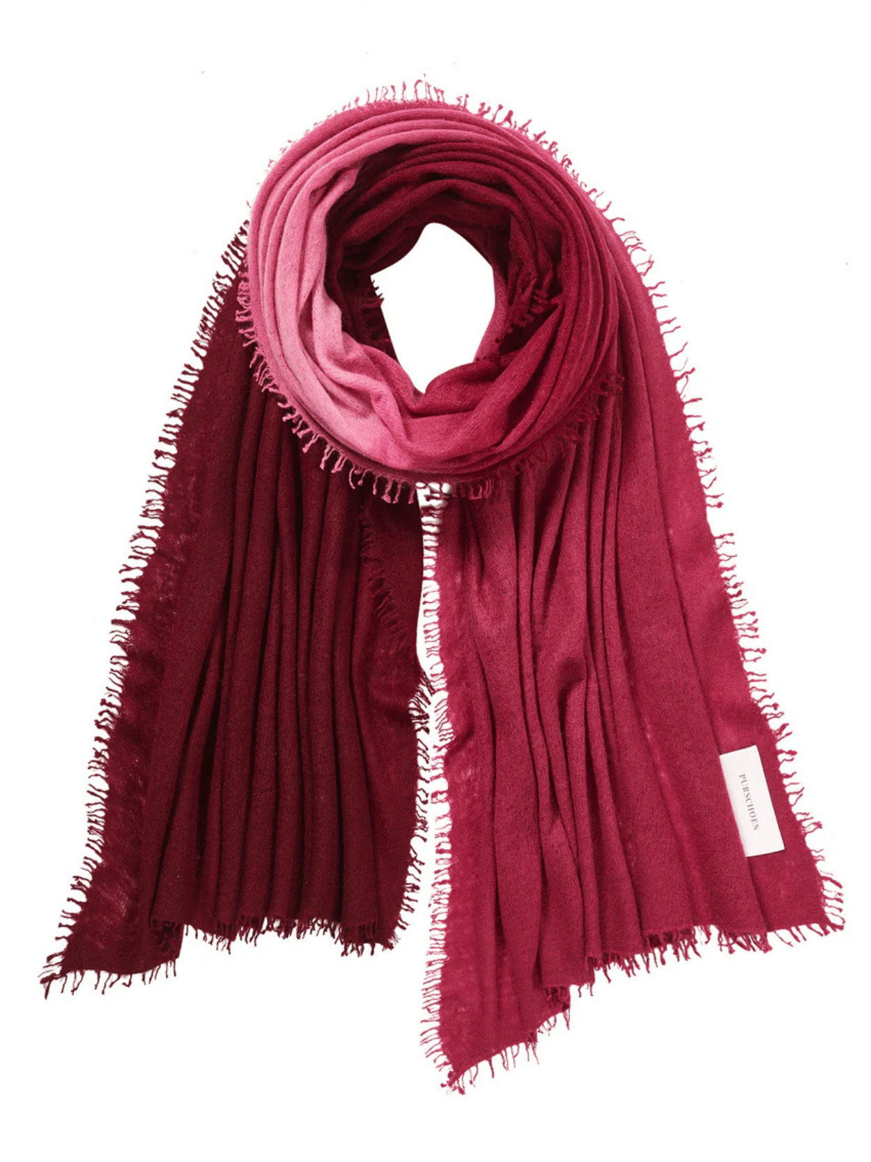 Dieser luxuriöse Schal von Purscheon wird in Nepal aus 100% reinem, zertifiziertem Kaschmir gefertigt.